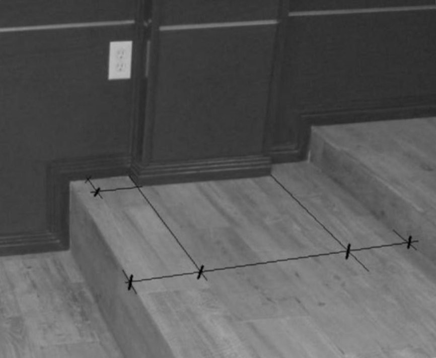 All measurements should be taken directly on the floor surface whenever possible. It is essential that these measurements are referenced between fixed physical boundaries that define the usable space. These boundaries may include—but are not limited to—carpet edges, lighting strips, steps, walls, parapets, or any architectural features that physically constrain the area. This approach ensures dimensional accuracy and alignment with real-world conditions, minimizing discrepancies during layout planning and installation.