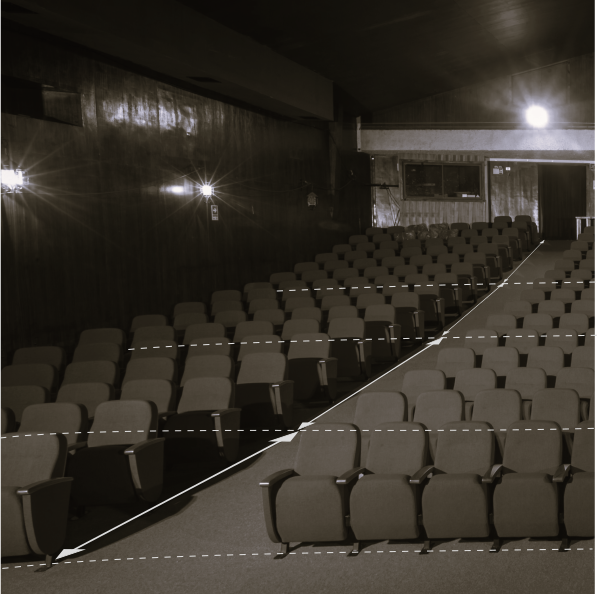 For a theater or cinema hall featuring sloped flooring, each ramp segment must be individually documented. The following parameters are to be recorded for every ramp: